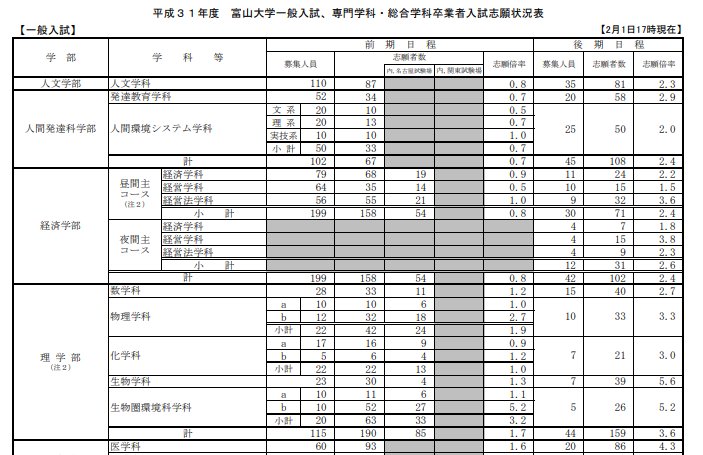 センターボーダー富山大学 大学入試速報 全学部学科の前期後期 学校 教育 福井のニュース 福井新聞online